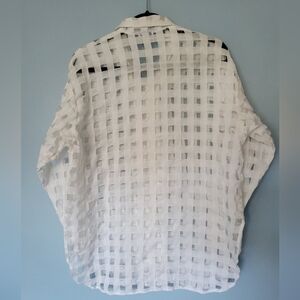 Ivano Boni Sheer Grid Plaid Cover-up Overlay Shirt White Large?