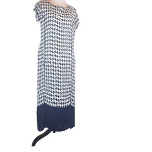 Ives dress navy blue and white houndstooth maxi short sleeve new with tags