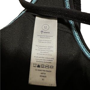 The top is made of 100% polyester with a fabric wash of dark and has a sleeveless design with a halter strap type. It has a round neckline and a pullover closure. This tank top is suitable for various occasions such as activewear and casual wear, and is perfect for summer and spring seasons. It features easy care, breathability, and is suitable for all seasons. The top has a solid pattern with no graphic print or accents. It is machine washable and has a brand name of ivivva. The top is fit for athletic purposes and is part of the Ivivva by Lululemon product line.