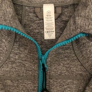 Heather gray, with turquoise zipper, super soft, comfy jacket. This will be your daughters go to light weight jacket! It’s amazing. Excellent condition.