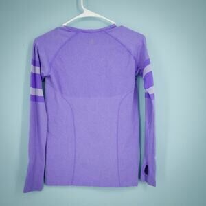 Ivivva Lululemon Girls Size 14 Purple Fly Tech Stripe Long Sleeve Crew Neck Active Nylon Polyester Elastane Blend Knit Top Blouse Shirt
