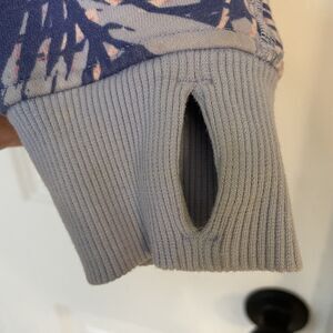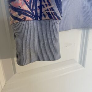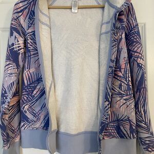 Girls Size 12 Purple Pink and Blue Palm Pattern Zip Sweatshirt. Good used condition, normal wash wear. Excellent premium quality Lululemon hoodie for preteen/teen girl size 12. Great for school, lounging, or vacation. Measures 17 inches underarms, 22 inch length shoulder to bottom hem.