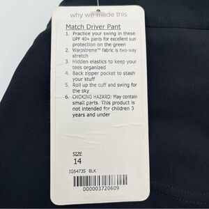 Ivivva Match Driver Pants Girls Golf Black 14 NWT from Lululemon Kids. Item is new with tags. Unused. Smoke free, pet friendly home. Colors may vary based on lighting.