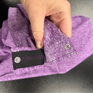 Made of beloved lululemon material this heathered purple leather infinity scarf can unsnapped to serve as regular scarf or keep snapped up tight in a loop. No flaws. Perfect for keeping warm while outdoor training or just keeping a sporty look.