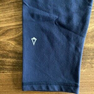 Ivivva capri leggings, girls’ 12, 87% nylon/13% Lycra elastane. Navy blue, carpi length, hidden back pocket on waistband with name tag (unused), light wear to seams.