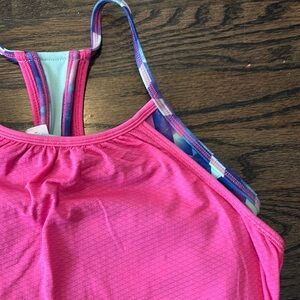 Bright pink kids tank top with colorful straps with built in shelf bra. . Perfect for casual wear. Gently used.