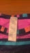 Colorful long sleeve top with bold stripes. Features pink, orange, and blue tones. Ideal for a vibrant look. Very good condition