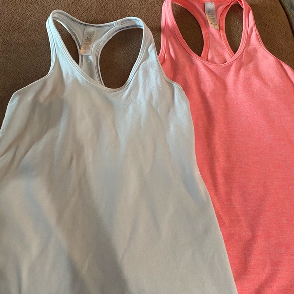 Set of 2 Ivivva racerback tanks. White is reversible. Both size 12. Color is coral more than orange