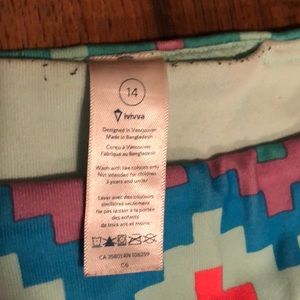 Size 14 full length Ivivva rhythmic tight for GIRLS. Fits adult size 8. No signs of wear, slight pilling noted by tag and groin area, the color makes it hard to see! No holes or stains, gently worn! These look small but have amazing stretch! Bought because I thought maybe they would be shorter, not the case I am 5’5 and still have to roll the bottoms up a bit.