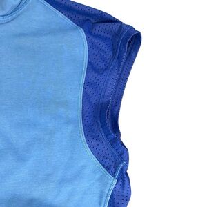 Periwinkle blue hoodie vest with perforated details. Ideal for layering.
