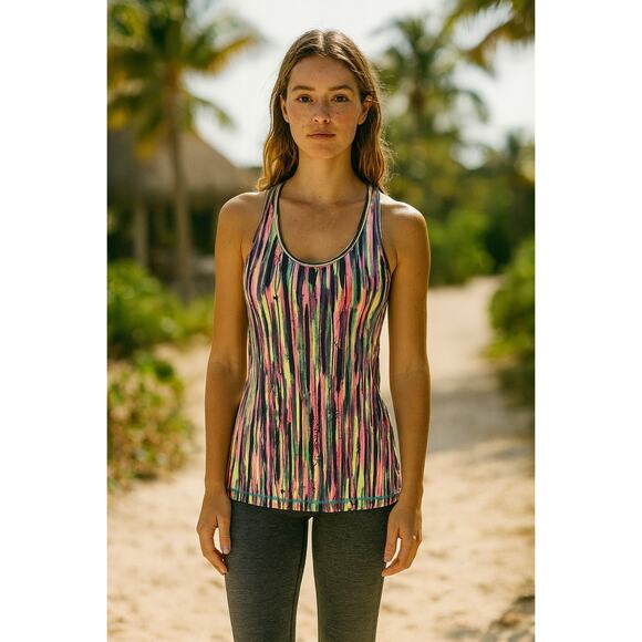 Ivivva Yellow Black Pink Abstract Strip Knit Tank Girls 14