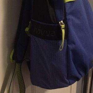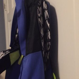 Blue, black, and neon yellow backpack