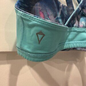 Ivivva by Lululemon Complete Focus Bra Reversible Ice Reflections Multi/Island Breeze Size 12 Classic sports bra! Perfect for any activity or everyday wear. Has been worn between 5-10 times, but is still in GREAT condition. On one side, there is marble/multicolor theme with dark colors, and on the other, it's solid turquoise. Please note, there is a small bleach stain on the island breeze/turquoise side on the front. See image. Because it's reversible, it's unnoticeable from the multicolor side.