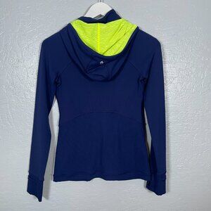 Ivivva by Lululemon Girls 12 Navy Blue Green Athletic Jacket Hooded Pockets