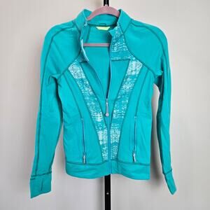 Ivivva by Lululemon | Scuba Jacket with Hood Large Embroidered Logo Teal Blue 8