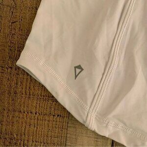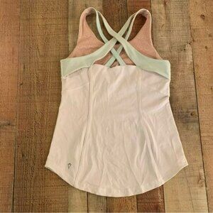 This stylish Ivivva tank top features a chic white and blue design with a unique cross back detail, perfect for active girls. Comfortable and versatile, it's great for sports or casual wear.