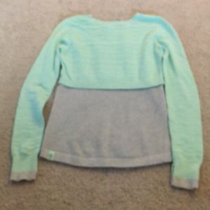 Ivivva knitted pullover. Long sleeve with thumb holes. Minor snag on left arm. See 2nd picture. No holes or tears. Teal and gray colors.