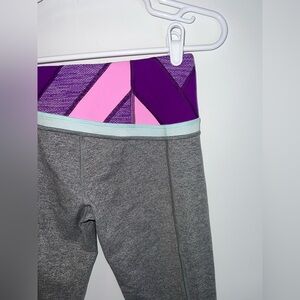 Stylish kids leggings featuring a vibrant purple waistband. Perfect for active days.