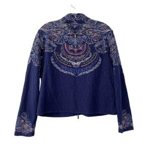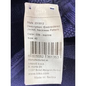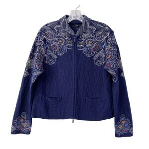 Ivko Embroidered Jacket Cardigan Size 40 L Zip Front Pockets Neckless Pattern