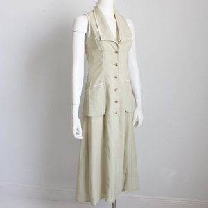 Ivoire de Laurence Paris Dress Celery Midi Sleeveless Linen France