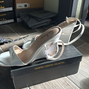 Lulus Clane Ivory Satin Ankle Strap Wedge Sandal