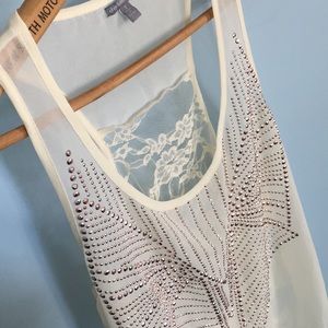Fun bling shirt. Rose gold embellishment with Lace racer back EUC
