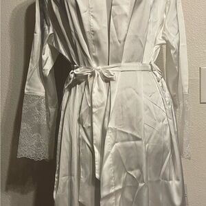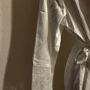 NWT One size Davids Bridal ivory robe. Soft lace on sleeves.