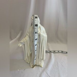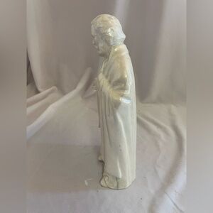 This ivory ceramic monk sculpture brings a serene elegance to your home decor. Its smooth finish and graceful design create a peaceful ambiance.