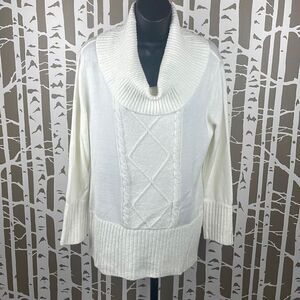 Ivory Cowl Neck 3/4 Sleeve Longline Sweater sz L