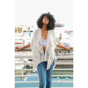 Ivory Daisy Embroidered Woven Floral Kimono Open Wrap Coverup Top One Size