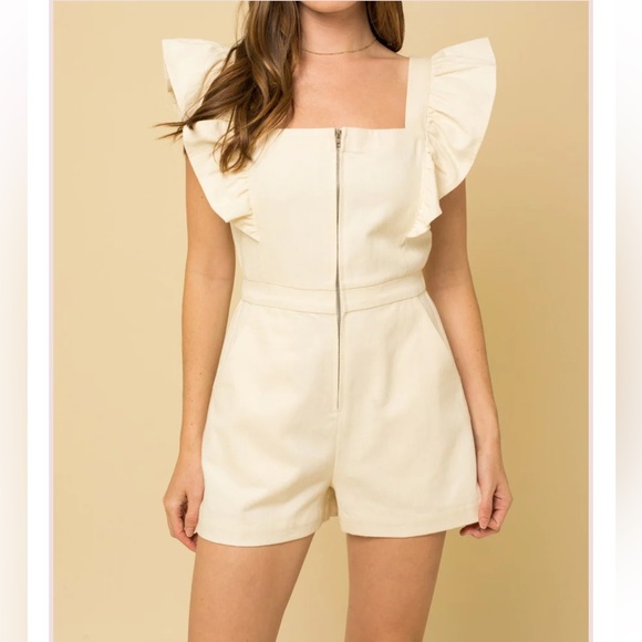 Get ready to romp around in style with this Denim Romper! Featuring adorable ruffle short sleeves and a convenient front zipper, this romper is the perfect combination of fashion and function. So why settle for ordinary when you can romp it up in this Romper!