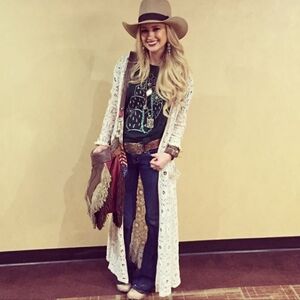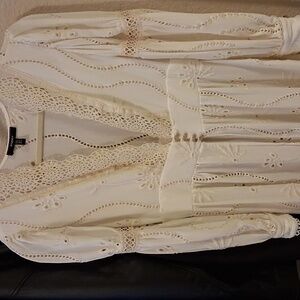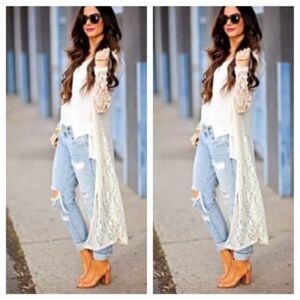 Chic ivory duster with delicate eyelet accents. Perfect for any occasion.