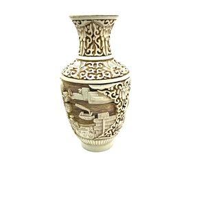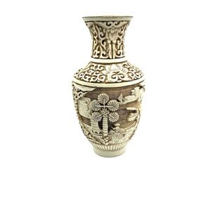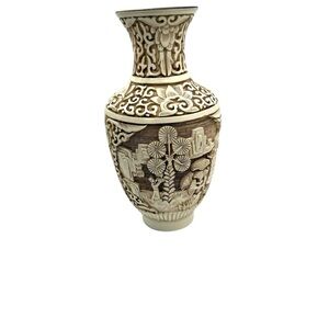 Ivory Dynasty 1982 Arnart Imports Carved Cinnabar & Brass Vase Asian Inspired