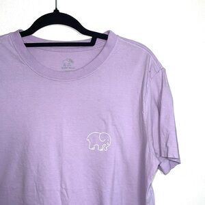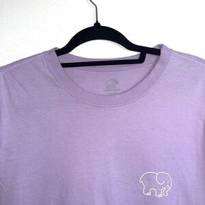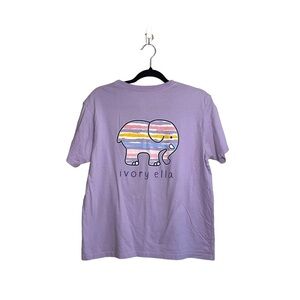 Ivory Ella light purple pastel striped elephant graphic tee. In excellent condition! Crew neckline. Short sleeves. Small white elephant on the front. Large elephant on back with pastel colored stripes. Light lilac purple color. Size medium.