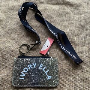 Ivory Ella Glitter Ombré Lanyard NWT Black & Gold New badge Holder