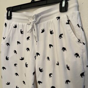Ivory Ella Women's Organic Cotton Relaxed Elephant Sweatpants, White/Black- S
