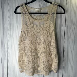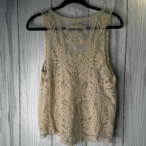 Ivory Embroidered Lace Top Womens Small Say WhatSheer Festival Hippie Boho Tank