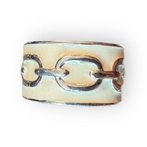 Ivory Enamel Sterling Silver Link Ring (7.5)