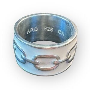 Designer Sterling Silver Ivory Enamel Link Ring (Sz 7.5)