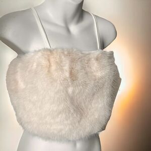 Ivory Faux Fur Cami Off White Tank Women's Medium Fuzzy Festival Winter Party