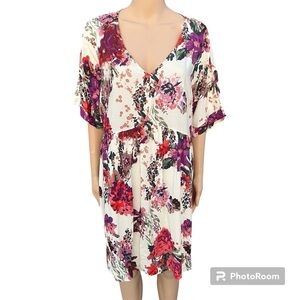 Ivory floral, short sleeve, dress, new with tags from boutique, baby doll dress size 2X measurements taken flat lay