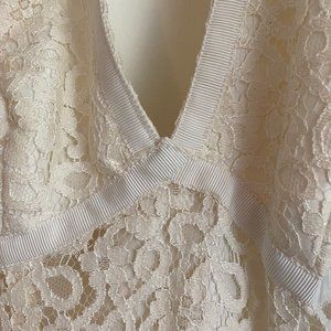 This dress is perfect for an outdoor wedding with a boho feel. Halter-style neckline with a little boning in the rib area and open back. Measurements: