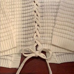 This beautiful knit cardigan has two front pockets with a zig-zag lace up back. It would look great as a swimsuit cover up, or add on to any outfit to give it a comfy, laid back look. Thank you for your interest!