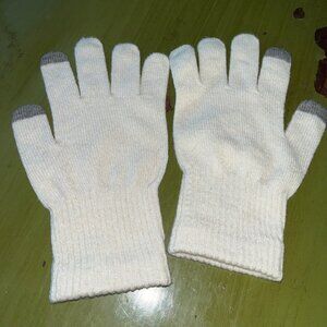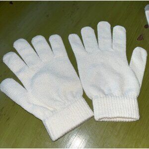 Lot of 2 pairs of new ivory knit gloves, recycled poly, versatile, neutral, elegant casual, stocking stuffers gift potential.