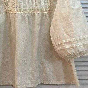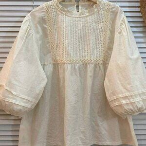 Ivory Lace Detail Long Sleeve Peasant Blouse