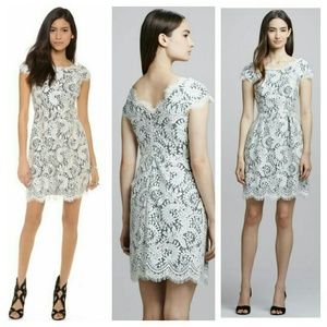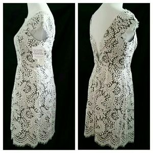 ●Guipure lace adds aesthetic to this femininine dress with eyelash edges for a graceful finish. Cap sleeves. Pleats lend slight volume to the skirt. Hidden back zip. Black lining. Slight sheen to lace. Technically a mini but will obviously depend on your height.