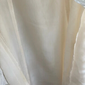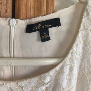 Labeled as large but I think it fits more like a Medium. It does have a cream lining under the lace. In the last photo, shown up to light it is slightly see through. I wore nude undergarments and you couldn’t see anything.