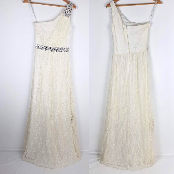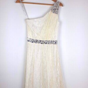Ivory Lace Gown Size 5. Fairy Greek goddess one shoulder rhinestones prom formal