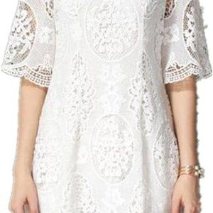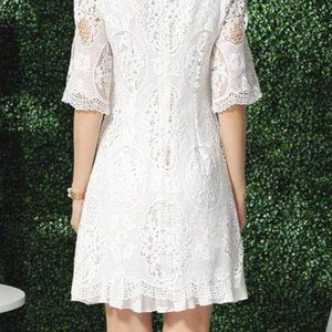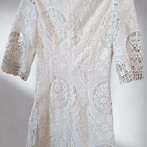 Ivory Lace Mini dress with V-neck, S