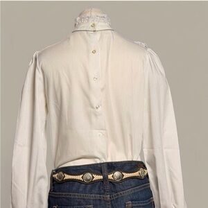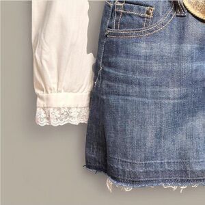 unique western-inspired piece with delicate lace v panel + lace trim around the collar